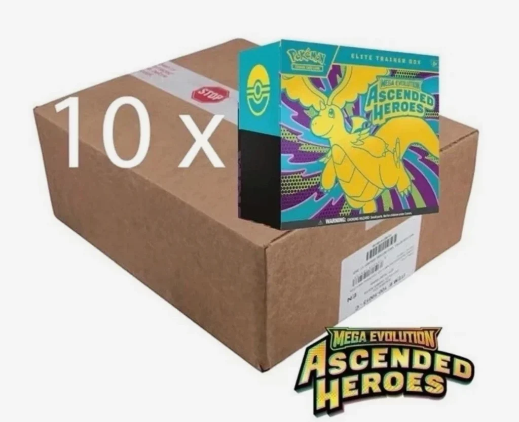 Lock in your premium inventory. This factory-sealed case contains 10 Pokémon TCG: Mega Evolution—Ascended Heroes Elite Trainer Boxes. Ideal for serious collectors, investors, or store owners looking for flawless display pieces.